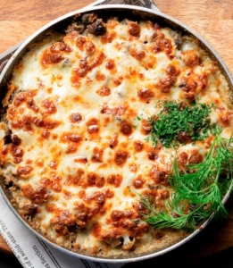 Куриное филе, шампиньоны, сливки, ароматные специи, сыр