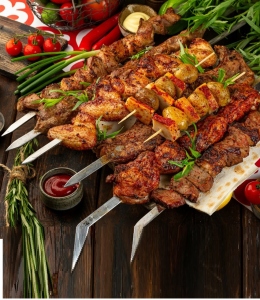 Шашлык свинина, ребро, антрекот, баранина, крыло, голень, печеный картофель